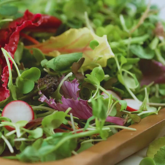 Heirloom Mesclun Salad Mix is an easy to grow flavorful blend of tender lettuces and vibrant baby greens for fresh, gourmet salads straight from your garden. This carefully balanced blend includes heirloom varieties of arugula, mizuna, tatsoi, endive, kale, mustard and classic lettuces like Red Romaine, Oakleaf, and Black Seeded Simpson. “Cut-and-come-again” and quick to harvest, these greens offer a range of colors, textures. and flavors. From mild and buttery to peppery and crisp. Enjoy a beautiful, nutrient-rich salad straight from your garden!